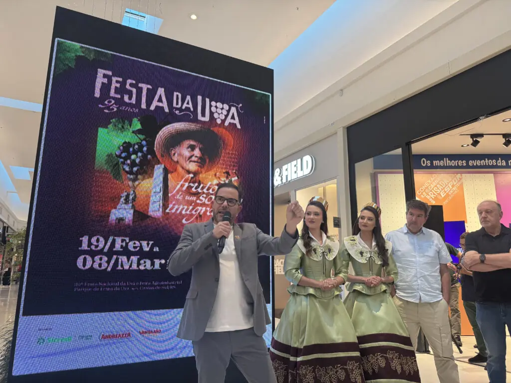 A programação foi anunciada nesta quinta-feira, 04, em evento para imprensa na empresa Personnalité Eventos, localizada no Shopping Villagio. Para o diretor de Eventos da Comissão Comunitária, Airton Rodrigo Martins, o Totti, a proposta é ampliar as experiências do público. “Buscamos construir uma programação diversa, que dialogue com diferentes públicos e transforme a Festa em um grande encontro de gerações”, destaca. Já para o presidente da Festa Nacional da Uva, Fernando Bertotto, a ampliação dos shows nacionais reforça o posicionamento do evento como uma entrega completa ao público, que vai muito além da música.