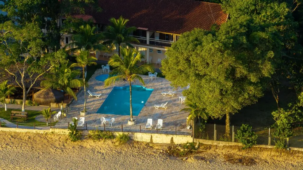 As manhãs começam com café da manhã completo, com pães e bolos de produção própria, além de frutas, sucos, chás e frios. A poucos passos dali, o acesso direto à praia reforça a proposta “pé na areia”. O hotel disponibiliza cadeiras e guarda-sóis, enquanto o bar e restaurante entram em funcionamento a partir das 10h para atender hóspedes ao longo do dia.